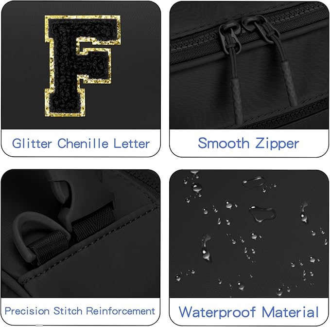 Initial Insulated Lunch Bag for Boys Kids, Back to School Gift, Reusable Leak-proof Lunch Box with Adjustable Strap for School Daycare Travel Picnic(Black,F)