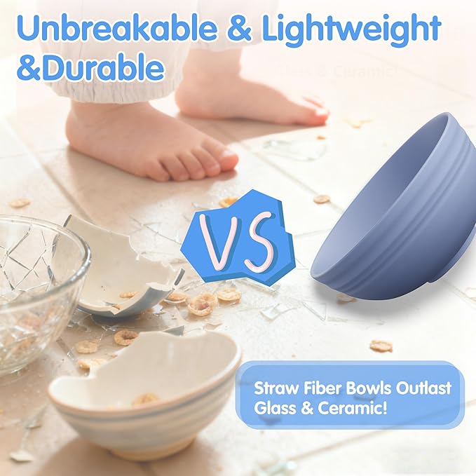 - Lightweight & Unbreakable: Made from durable wheat straw fiber, this cereal bowls are shatterproof for daily use. Lighter than ceramic/glass, it's kid-friendly design reduces spills while encouraging self-feeding