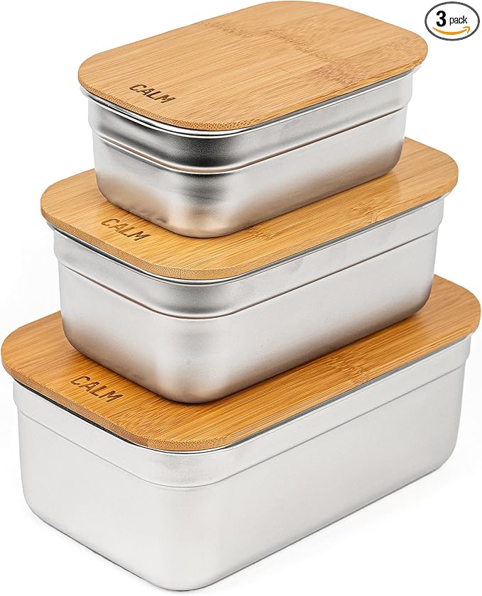 - PREMIUM STAINLESS STEEL CONTAINER SET: Calm Organics food storage set includes 3 brushed SUS304 stainless steel containers (6, 4.5, and 2 cups) for long-lasting durability, freshness, and elevated design.