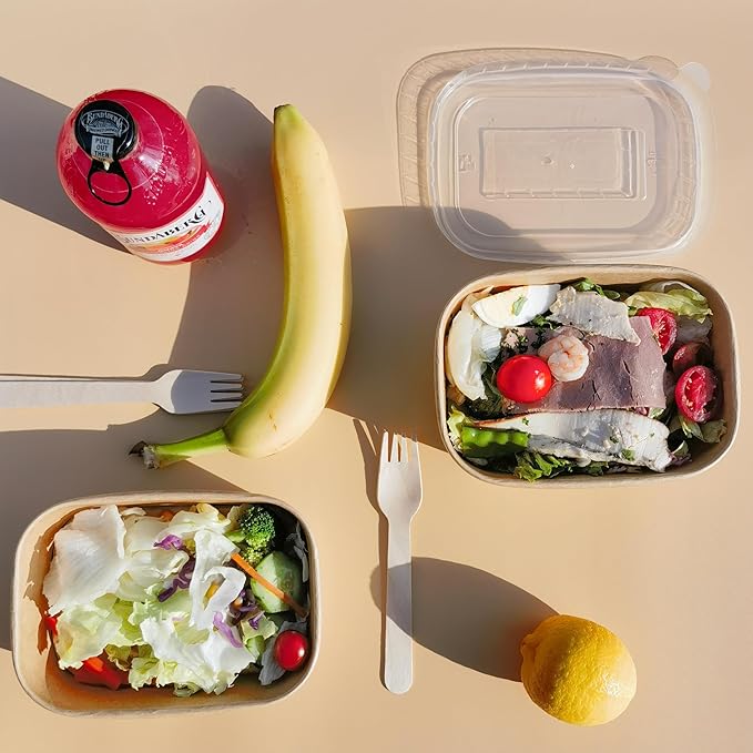 - ALL-IN-ONE MEAL PREP SOLUTION: As the ultimate meal prep containers, 50 disposable paper bowls with lids + 50 birch wood forks + 100 sticky labels in one box! Perfect for backyard BBQs, game nights, or birthdays.– no more scrambling for containers or markers!