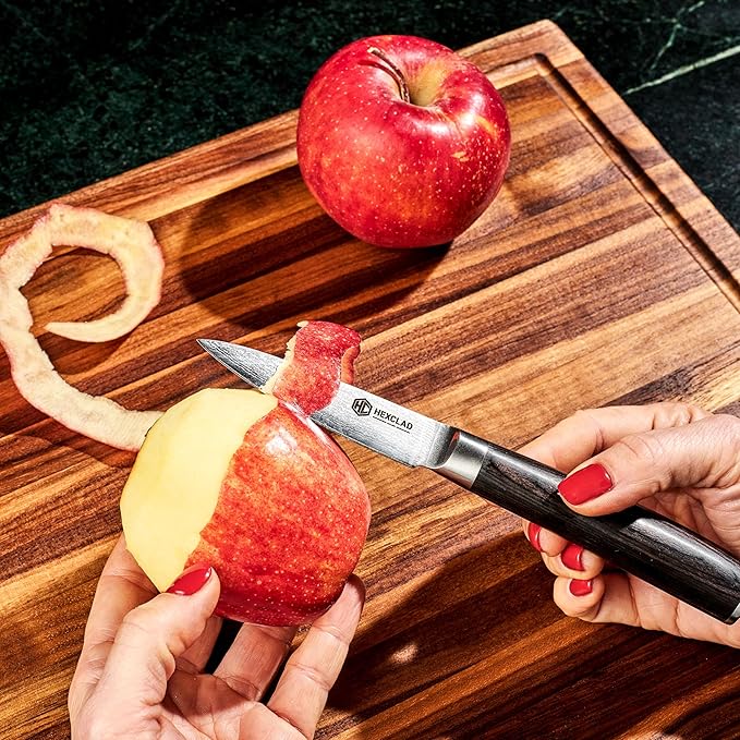 - Our Japanese Damascus steel HexClad knife collection is the essential assortment of knives that every home kitchen needs including an 8" chef knife, 8" bread knife, 6" boning knife, 5" utility knife, 3.5" paring knife, and a 9" honing rod.