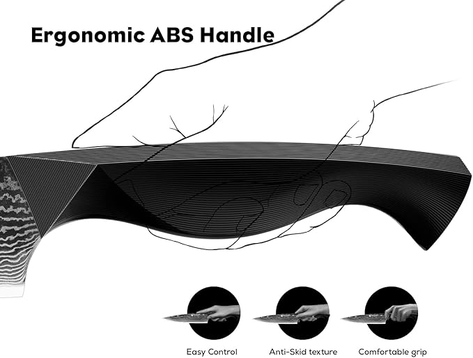 - Ergonomic Full-Tang Design: Our damascu chef knife set provides superior balance and comfort grip with its blade running through the ABS handle. It's like an extension of your hand, ensuring a secure grip and reducing fatigue during long cooking sessions
