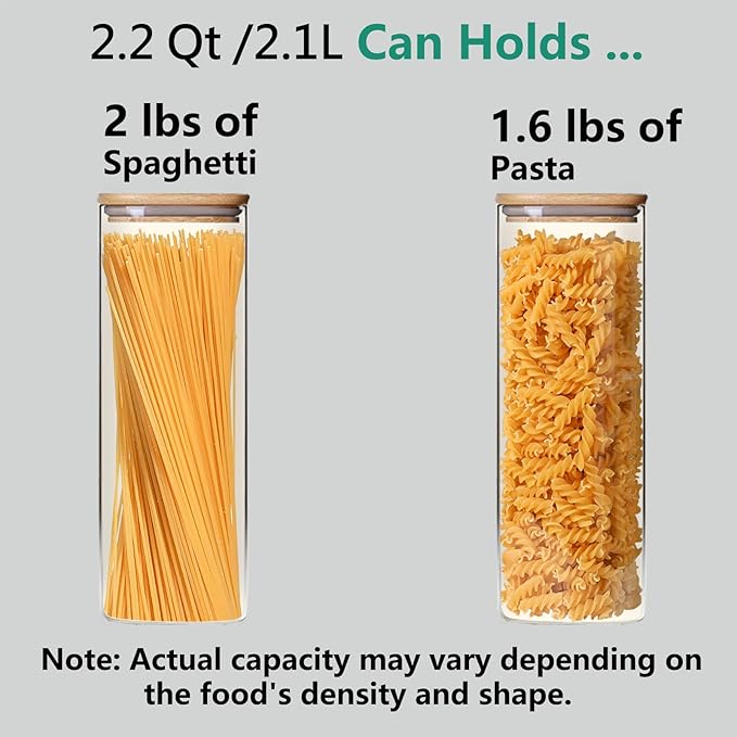 - [Tall and Large for Food Storage] 3 Square jars with , dimensions are 3.94x11.26 inches(10cmx28.6cm),It can store pasta, noodles, flour, cereal, tea,cookies, candy, flour, rice, beans, spice, cereals etc.Store goodies for foodies and keep your kitchen organized