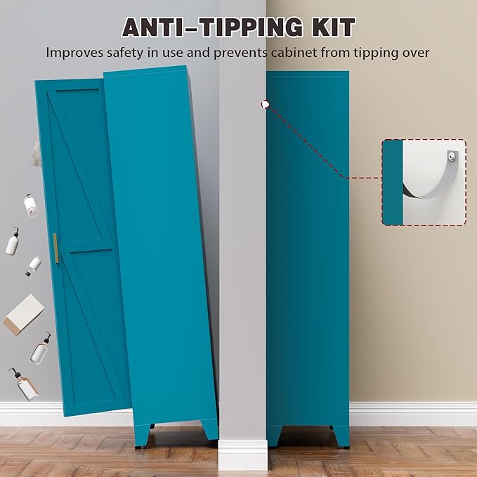 - High-quality Material: Crafted from premium-grade steel, this kitchen storage cabinet boasts an exceptional foundation of durability. The metal surface is coated with electrostatic powder coating to ensure that the cabinets are colorful and durable, as well as waterproof, dustproof and easy to clean