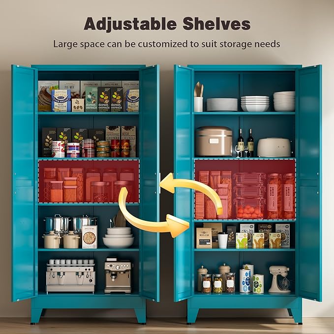 71" Tall Metal Pantry Cabinet, Kitchen Storage Cabinet with 2 Doors and 4 Adjustable Shelves for Kitchen, Living Room, Dining Room, Bathroom and Home, Office (Blue, 71" H)