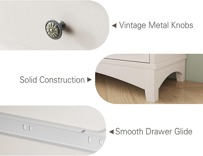 - Rustic Charm Meets Modern Safety The elegant arched base adds farmhouse character to your kitchen, while the metal anti-tip device provides crucial stability and protection. This antique white cabinet combines vintage aesthetics with contemporary safety standards.