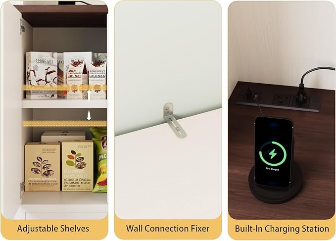 - Charging Station & Durable Surface Features a built-in electrical outlet on the waterproof, scratch-resistant countertop. Safely power blenders, charge devices, or operate small appliances while maintaining a clean, organized kitchen workspace.