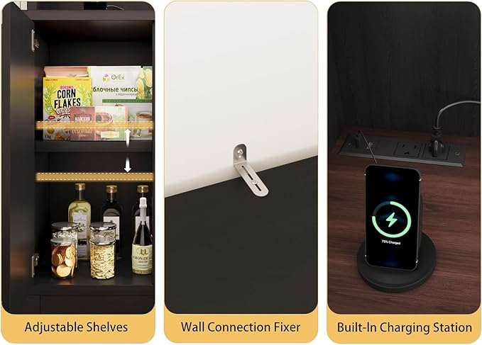 - Rustic Charm Meets Modern Safety The elegant arched base adds farmhouse character to your kitchen, while the metal anti-tip device provides crucial stability and protection. This black kitchen cabinet combines vintage aesthetics with contemporary safety standards.