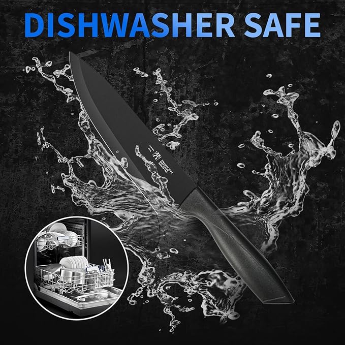 - DISHWASHER SAFE - The knife set can be washed in the dishwasher, easy and quick to operate, and dry the knife set after cleaning for easy storage, not taking up space.